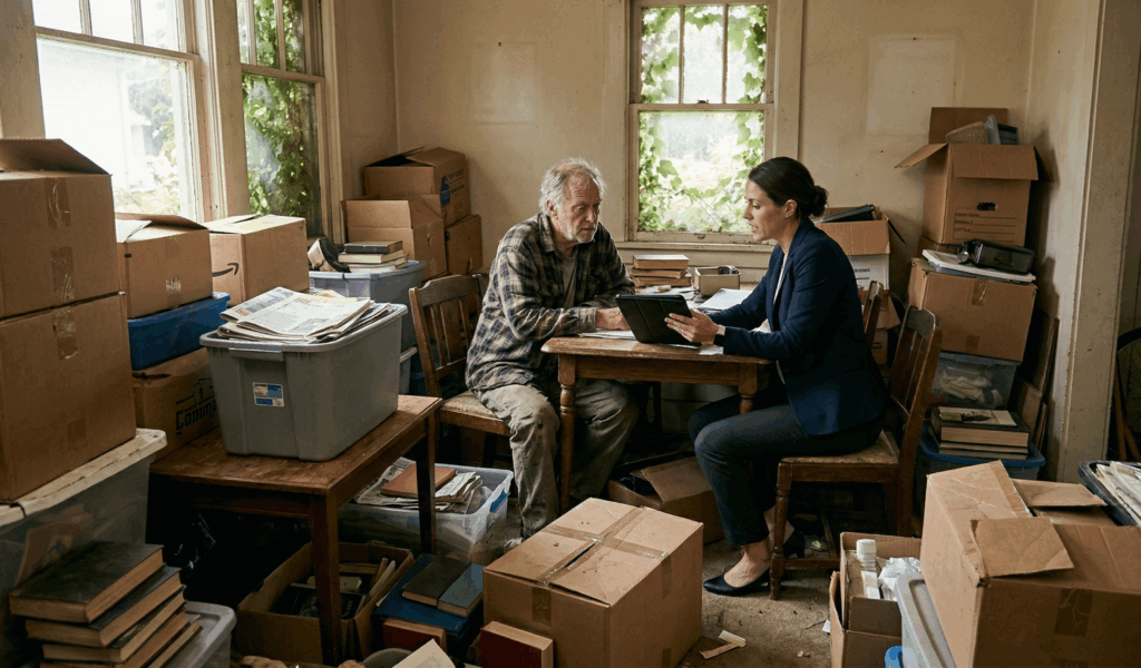 When it’s an inherited hoarder house, you need to prove you’ve got the right to sell. That means probate court approval or executor paperwork. Once that’s sorted, you can move forward.